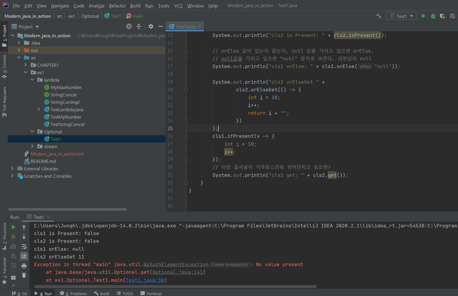 그래서 orElseGet()나 orElse()를 함수를 만들어서 그것들의 리턴값으로 바꾼다는 이야기다.