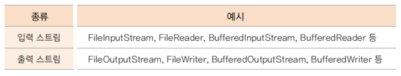 - I/O 대상 기준 : 입력 스트림, 출력 스트림