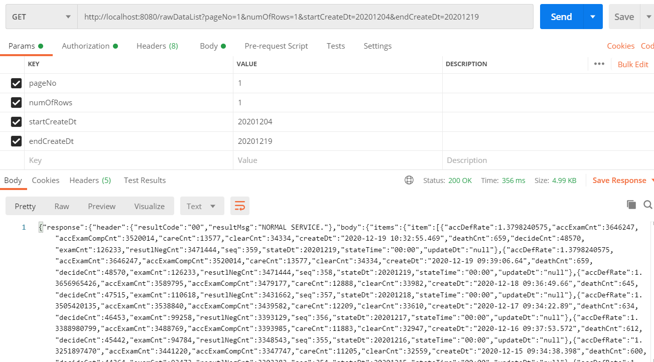 Object response = rawDataService.rawDataCode(rawDataDto.getPageNo(), rawDataDto.getNumOfRows(),